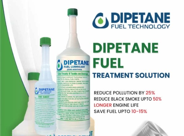 Dipetane was invented in Ireland 30 years ago and has been proven to reduce fuel consumption by 10%-15% and reduce emissions by 25%.